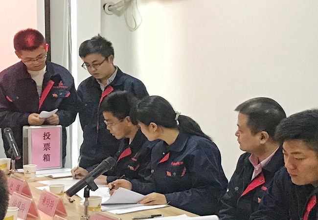 試驗檢測公司黨支部換屆選舉大會上審議通過了《安徽路橋集團試驗檢測公司支部委員會選舉辦法》,并通過唱票人、計票人和監票人。全體黨員在聽取候選人基本情況后,通過無記名差額選舉方式選舉出新一屆3名支部委員會委員。
