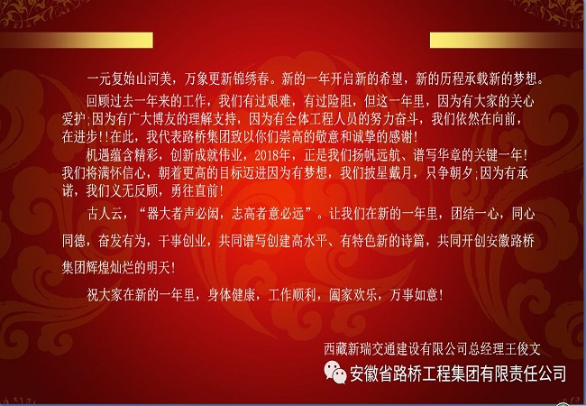 最后,王俊文總經(jīng)理祝愿新的一年里路橋集團(tuán)蒸蒸日上,西藏新瑞蓬勃發(fā)展!