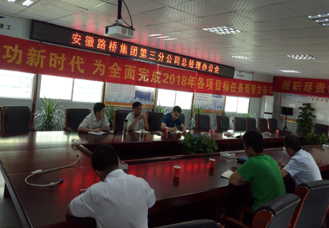 5月27日下午,三分公司在合安高速改擴建工程第一合同段項目會議室召開6月總經理辦公會。會議由三分公司黨總支書記、總經理鮑建新主持,三分公司領導班子全員參加、項目管理部工作人員與會記錄。