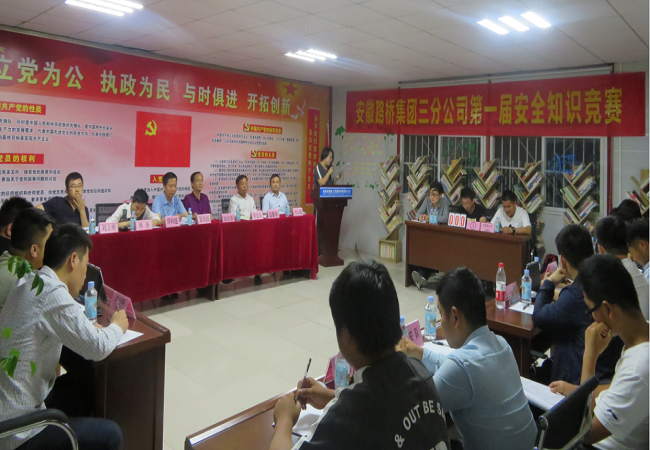 為響應公司“安全生產月”活動部署、推進分公司“安康杯”啟動工作,并鼓勵全體管理人員主動深入學習安全生產基本常識,形成“人人學安全,人人懂安全”的良好氛圍, 6月3日晚7點半,三分公司第一屆安全知識競賽在合安01標項目黨員活動室準時舉行。分公司領導班子、項目管理部及黨群工作部相關人員參加,公司工會副主席陸在銀、安全管理部經理周衍超受邀出席。