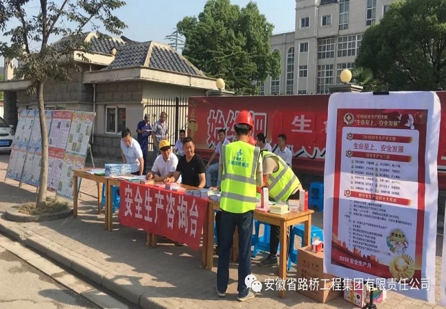 正值第17個(gè)全國(guó)“安全生產(chǎn)月”,6月15日上午,S215路基01標(biāo)、路面標(biāo)項(xiàng)目部聯(lián)合新杭鎮(zhèn)政府、公安消防大隊(duì)、交警隊(duì)、食品藥品監(jiān)督管理局、國(guó)家電網(wǎng)、宣燃天然氣有限公司共同舉辦2018年“安全生產(chǎn)月”集中宣傳咨詢?nèi)栈顒?dòng)。