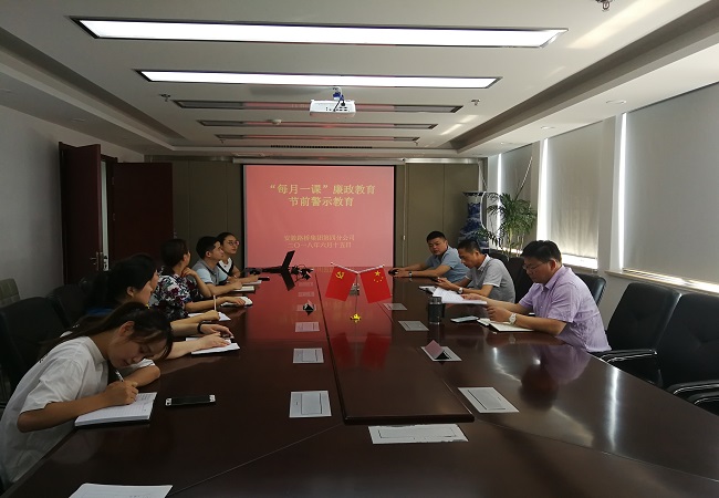 6月15日上午,四分公司機關在企融國際大廈16樓會議室組織召開“每月一課”廉政教育及節前警示教育學習會。會議由黨總支書記朱大俊主持,四分公司機關全體員工參加。