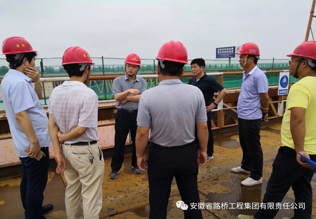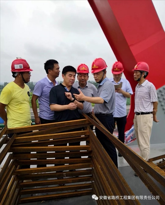 7月5日上午,安徽省交通控股集團(tuán)總工程師胡可一行蒞臨合安項(xiàng)目中派河特大橋調(diào)研指導(dǎo)工作,項(xiàng)目辦主任吳建民、副主任鄧陳記、項(xiàng)目經(jīng)理郭永剛、副經(jīng)理陸勤龍陪同調(diào)研。