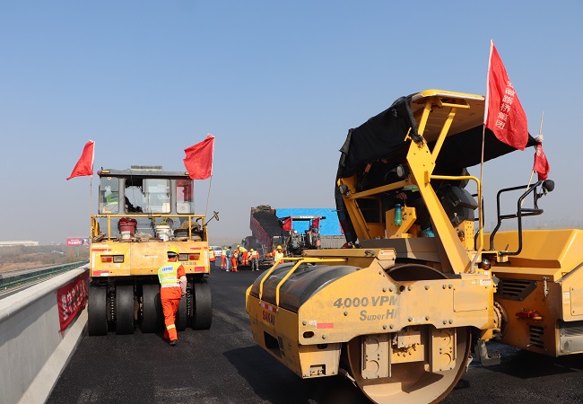 寒冬伊始,朔風凜冽。在合安改擴建01標路面項目部的施工現場卻是另一番景象,11月23日早晨,在多臺攤鋪機、壓路機等重型機械的協同作戰下,在一片機器協奏曲和動員指揮聲中,在瀝青攤鋪渲染的熱氣上,合安路面項目開始了中派河大橋左幅中面層Ac-20攤鋪,這是繼11月2日中派河大橋合攏后又一重要工程節點,為完成年底大橋通車邁出了更快的步伐。