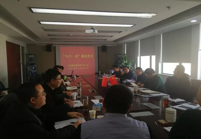 1月26日下午,四分公司黨總支在企融國際16樓會議室召開春節前廉政教育學習會,學習公司紀委下發的“每月一課”廉政教育材料,四分公司領導班子、機關各部門負責人、各項目負責人參加會議,會議由黨總支書記朱大俊主持。