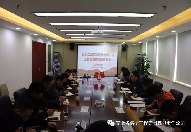 3月23日,二分公司黨總支召開專題宣貫會(huì),黨總支副書記、總經(jīng)理張立兵傳達(dá)了公司職代會(huì)上黨委書記、董事長(zhǎng)盛明宏作的題為《不忘初心砥礪奮進(jìn) 全力推動(dòng)安徽路橋集團(tuán)邁向新征程》的講話和公司黨委副書記、總經(jīng)理歐陽志宜作的題為《堅(jiān)定信心謀發(fā)展 繼往開來譜新篇 為建成安徽省一流交通建設(shè)企業(yè)而努力奮斗》的工作報(bào)告。工代會(huì)代表帶領(lǐng)與會(huì)人員學(xué)習(xí)了工代會(huì)上公司黨委委員、工會(huì)主席王永來作的題為《圍繞大局謀發(fā)展團(tuán)結(jié)職工鼓干勁 為安徽路橋集團(tuán)新一輪發(fā)展建功立業(yè)》的工會(huì)工作報(bào)告。