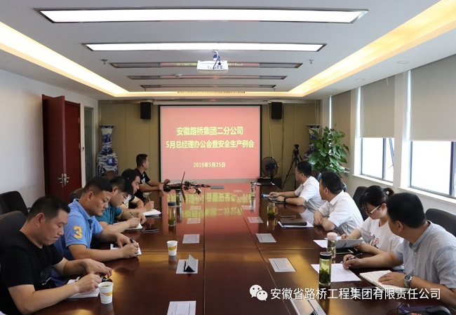 5月25日,二分公司召開五月份總經理辦公會暨安全生產例會,會議由黨總支副書記、總經理張立兵主持,分公司領導班子成員、機關各部門負責人、所屬各項目負責人及安全員參加會議。
