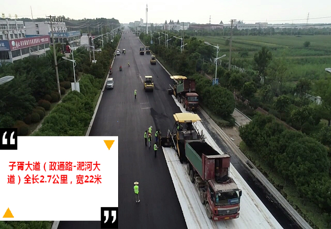 截至目前,利辛PPP項目已完成對晴嵐西路(迎賓大道-開源路)、子胥大道(政通路-淝河大道)瀝青混凝土下面層的攤鋪,其中晴嵐西路,全長1.2公里,主車道寬9米,子胥大道全長2.7公里,主車道寬22米。其中,晴嵐西路項目于6月底才進場施工,計劃于9月3日完成瀝青混凝土上面層的攤鋪,9月5日實現主車道順利通車。