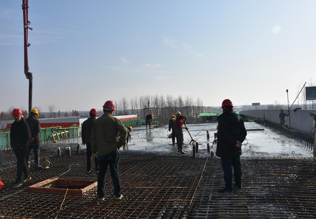 12月9日清晨,隨著泵車(chē)將混凝土輸送到指定位置, G105大橋迎來(lái)了右幅現(xiàn)澆箱梁頂板的澆筑。
