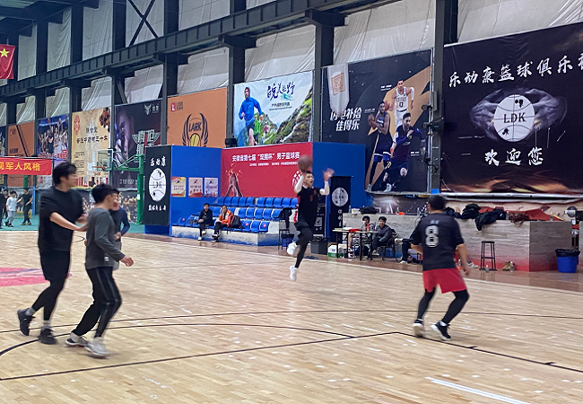 隨著裁判一聲哨響,球場氣氛立刻變得緊張起來,迅猛的攻勢,嚴密的防守,完美的配合,為比賽增添了許多亮點。在力量與技巧的相互對抗中,兩隊打得難解難分,參賽隊員們個個都全力以赴,在球場上來回奔跑, 精妙的傳球,精彩的上籃,精準的投球,時不時引起觀眾們的歡呼。