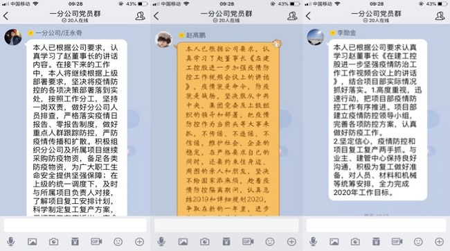 2月12日,一分公司黨總支組織全體黨員線上學(xué)習(xí)趙時(shí)運(yùn)同志《在建工控股進(jìn)一步加強(qiáng)疫情防控工作視頻會(huì)議上的講話》,認(rèn)真領(lǐng)悟講話精神,并隨機(jī)抽取18名黨員同志分享學(xué)習(xí)心得。