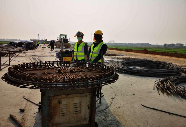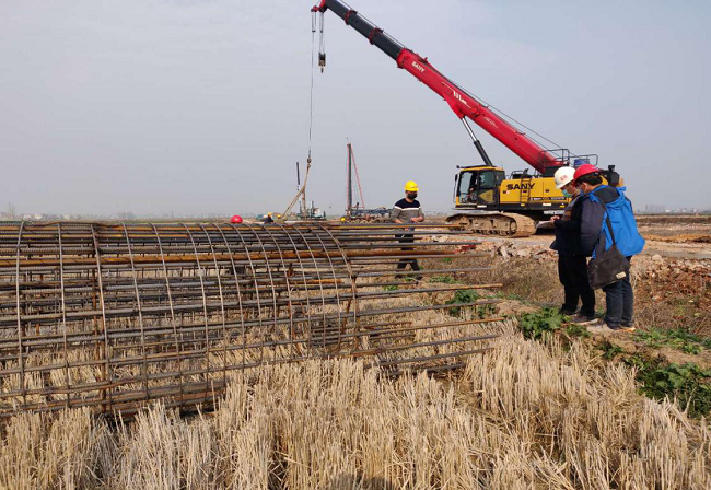 項目部及時編制復工方案和應急預案,積極與安慶市交通局、望江縣政府、縣交通局進行溝通,抗疫同時全力準備復工申請,2月23日望江縣交通局對項目的復工申請進行了正式批復許可。2月25日,項目全面復工,楊灣河特大橋引橋樁基順利開鉆、主橋樁基鋼筋籠制作、路基涵洞工程正緊鑼密鼓開展,為優質高效地完成全年建設任務打下扎實基礎。