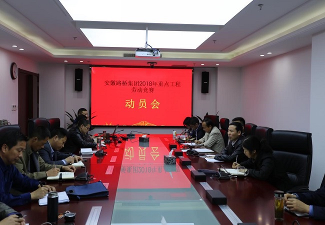 3月27日下午,安徽路橋集團“2018年度重點工程勞動競賽動員會”在公司九樓會議室召開。公司黨委書記、董事長、總經理盛明宏,黨委委員、紀委書記、工會主席王勝利,黨委委員、總工程師王潔,機關各部門主要負責人以及分子公司黨政負責人、工會主席等20余人參加動員會。會議由紀委書記、工會主席王勝利主持。