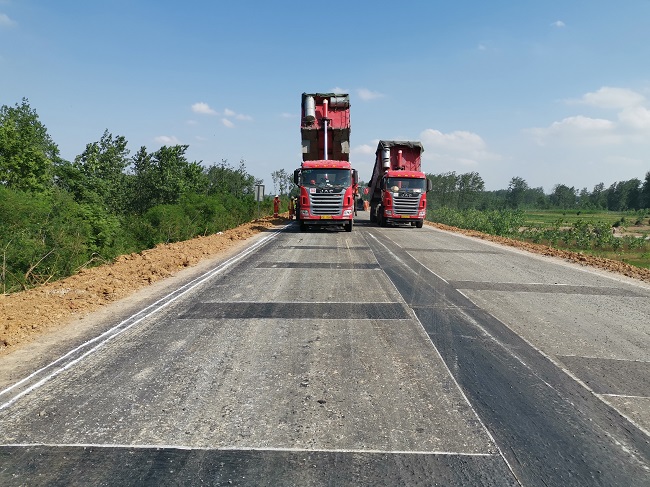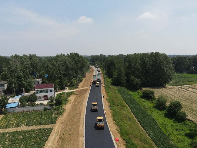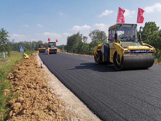 6月9日,裕安區單王至新安沿淠道路建設工程項目開始道路面層瀝青攤鋪工作。