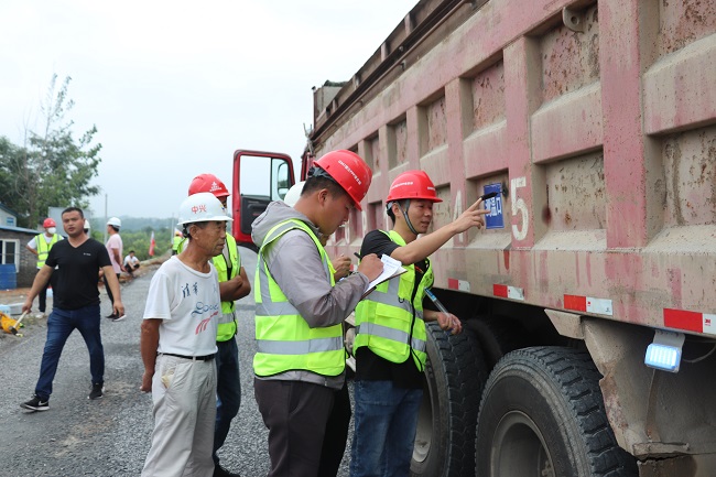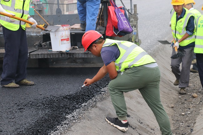 在施工過程中,現場技術員及時查看攤鋪厚度,試驗員實時查看瀝青攤鋪溫度,并對瀝青混合料的拌合、運輸、攤鋪、碾壓、檢測等各個施工環節嚴格把關,確保此次作業攤鋪質量。