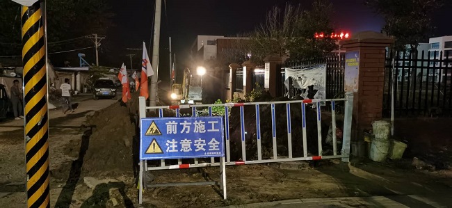 張橋口村落范圍約300米,西接光明路,東至駐馬溝。村內均是自建砂石硬化路,道路狹窄,管線復雜。項目部安排兩臺挖機從西向東,兩條排水管溝同時開挖,經過12小時的努力,7月17日8時,項目完成680m管溝開挖。此后,又耗時4個小時,將村內原有排水溝經光明路人行道外側與新建管溝連通。