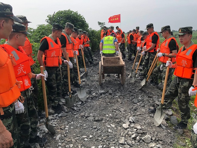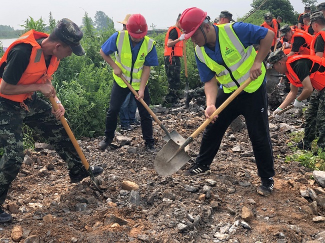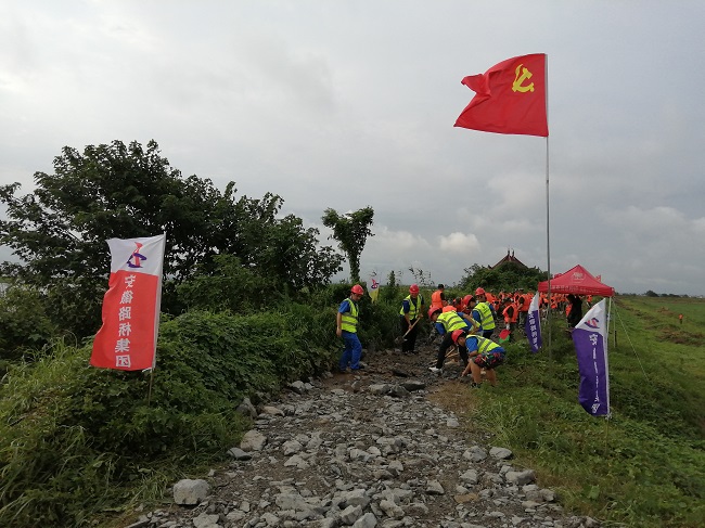 望江縣大治圩楊灣閘段圩堤道路受強(qiáng)降雨影響損毀嚴(yán)重,影響防汛保障物資運(yùn)輸。7月14日至15日,S211PPP項(xiàng)目十余名黨員、職工與武警安徽總隊(duì)機(jī)動(dòng)支隊(duì)百余名官兵緊急搶修大治圩防汛通道,做好防汛準(zhǔn)備。