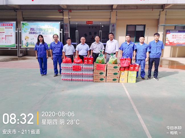 為做好防暑降溫工作,切實保障一線員工身心健康,望江縣指揮部赴S211PPP項目開展“送清涼”活動。8月6日上午,指揮部人員一行深入現場,看望慰問一線員工,為奮戰在一線的員工送去綠豆、白糖、西瓜、藿香正氣水等慰問品。