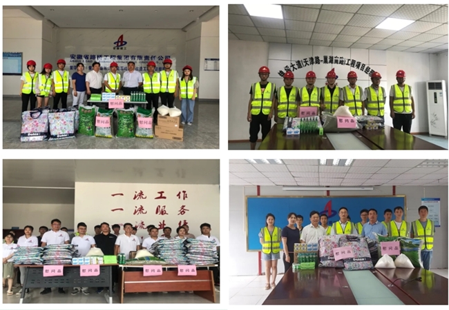 近日來(lái),高溫天氣再度來(lái)襲,為切實(shí)做好一線職工夏季安全生產(chǎn)和防暑降溫工作,一分公司工會(huì)開展“送清涼”活動(dòng)。8月3日-13日,一分公司領(lǐng)導(dǎo)班子帶隊(duì)赴繁華大道、無(wú)岳高速、利辛PPP、玉龍路、G329、錦繡大道、滁州恒興路等項(xiàng)目慰問(wèn)奮戰(zhàn)在施工一線的職工,把清涼送到職工手中。