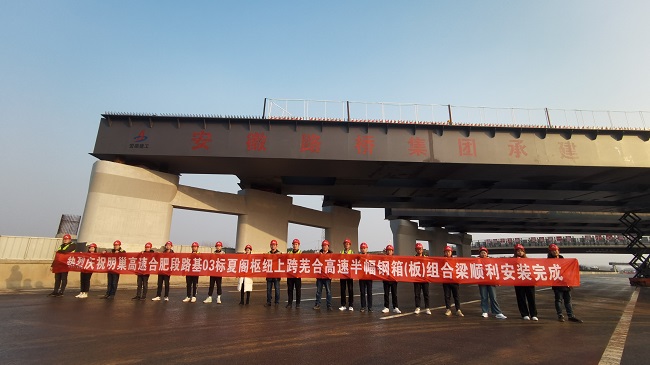 12月20日,隨著上跨蕪合高速巢湖側D匝道鋼箱(板)組合梁順利安裝完成,一路三方到現場進行驗收通過,明巢高速合肥段03標夏閣樞紐恢復合巢蕪高速雙向通行,圓滿完成項目業主制定的節點目標,較節點任務工期提前10日完成。