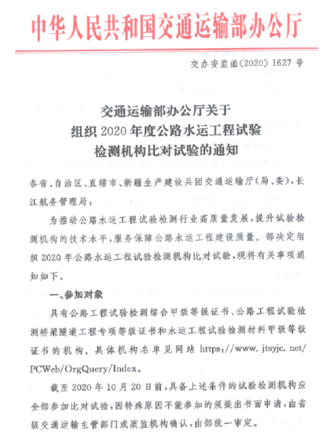 2020年10月,交通運輸部組織了“2020年度公路水運工程試驗檢測比對試驗”。檢測公司領(lǐng)導(dǎo)班子高度重視本次對比實驗,成立比對試驗組,參加了防水材料片材拉伸強(qiáng)度及拉斷伸長率(斷裂伸長率)的比對試驗。12月30日,交通部比對試驗結(jié)果反饋,檢測公司獲得了“滿意”評價,檢測公司獲得優(yōu)異成績。據(jù)了解,全國共有165家綜甲機(jī)構(gòu)參與本次比對試驗,安徽省有4家綜甲機(jī)構(gòu)參加公路工程檢測對比試驗,獲得“滿意”評價的僅2家。檢測公司作為安徽省獲評“滿意”兩家綜甲機(jī)構(gòu)之一,表明其技術(shù)實力在部考中代表了安徽省先進(jìn)水平,已經(jīng)躋身安徽省公路工程試驗檢測領(lǐng)域第一梯隊。