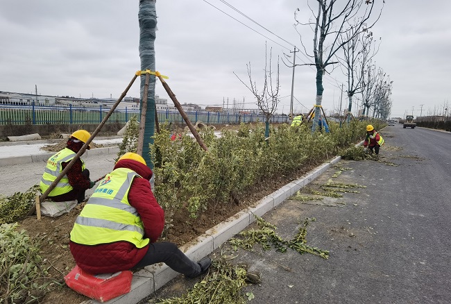 2021年是固鎮(zhèn)縣連徐路項目的收官之年。面對工期緊、任務(wù)重的局面,項目部員工迅速返崗,隨即項目部組織召開了節(jié)后復(fù)工復(fù)產(chǎn)協(xié)調(diào)會,明確了各部門節(jié)后復(fù)工復(fù)產(chǎn)的各項準(zhǔn)備工作。2月21日,項目各協(xié)作隊伍開始進場施工。因節(jié)前項目已完成改路水穩(wěn)施工,現(xiàn)主要進行改路混凝土澆筑及人行道土方整平、人行道綠化梧桐樹栽種、側(cè)分帶綠化金邊黃楊栽種。目前施工現(xiàn)場機械設(shè)備充足,配備挖掘機3臺、鏟車2臺、灑水車2臺,用于邊坡修整、土方整平、綠植養(yǎng)護的工作。