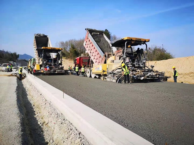 復工以來,在蕪黃高速路面02標的施工現場,攤鋪機正有序開展工作,項目部在復工之前全面開展復工安全檢查工作,目前水穩站正常恢復生產,橫向排水管施工,底基層攤鋪,下基層攤鋪正安全有序展開,路肩、中分帶、超高段排水施工,集水井施工等附屬工程也在有序進行中。