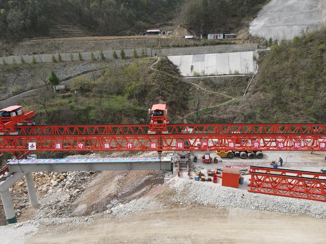 4月16日上午,九溝特大橋順利完成首片梁板架設,成為全線第一個梁板架設標段,標志著項目建設由下部結構施工階段進入上部結構施工的新階段。