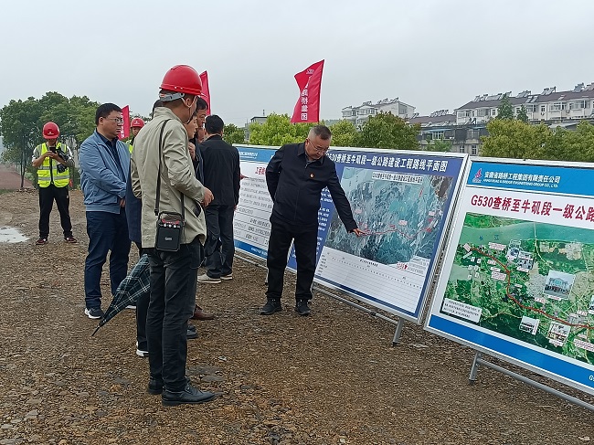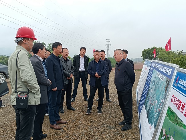 4月21日,東至縣委書記李明月、副縣長郭宏盛一行赴G530-02標項目調研。東至縣交通運輸局黨組書記、局長程國慶、池州市公路管理服務中心東至分中心主任兼項目辦主任吳學東等參加調研。