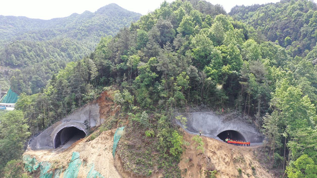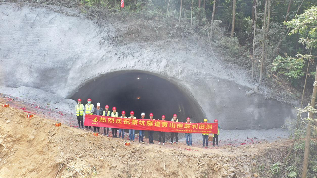 5月1日,黃千高速02標(biāo)項(xiàng)目控制性工程蔡坑隧道黃山端順利實(shí)現(xiàn)全幅貫通。