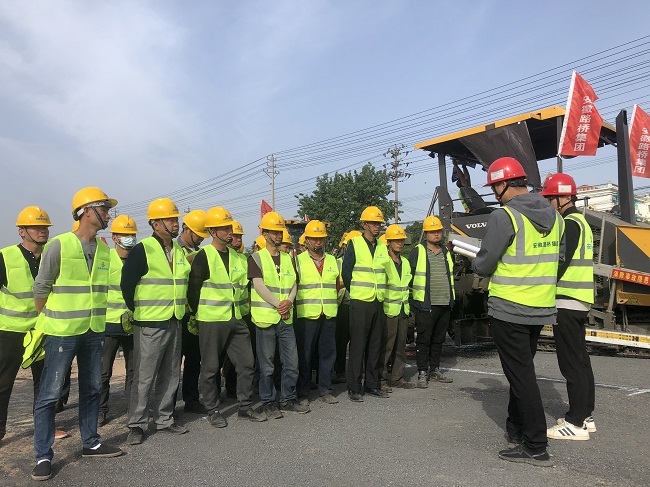 施工前首先對現場技術、安全、機械操作手等相關人員進行了詳細的安全技術交底和崗前培訓;細化管理、施工人員責任分工,周密安排瀝青混合料的拌和、運輸、攤鋪、碾壓、接縫以及開放交通等各項工作。在施工現場,2臺攤鋪機、3臺雙鋼輪壓路機、2臺膠輪壓路機、10輛運輸車,在指揮人員的調度下,有條不紊地工作著,施工人員的指揮聲和施工機械的轟鳴聲交織在一起,形成一首繁忙、熱鬧的施工“交響曲”。