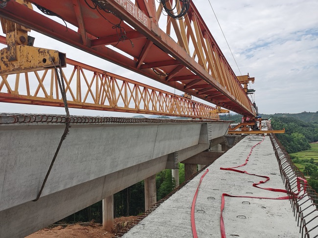 為保證官田沖大橋梁板架設(shè)的順利完成,蕪黃03標(biāo)克服了工期緊、任務(wù)重、施工難度大、安全風(fēng)險高以及雨季連續(xù)降雨天氣等各種不利因素,精心組織、多措并舉、力求實(shí)效。項(xiàng)目部組織架梁研討會,所有技術(shù)人員研究架梁方案,對架梁過程中可能產(chǎn)生的突發(fā)事件,做出應(yīng)急方案;并對架梁施工人員進(jìn)行技術(shù)培訓(xùn)和關(guān)鍵點(diǎn)技術(shù)交底,加強(qiáng)作業(yè)人員的班前安全教育,確保每一位技術(shù)人員和施工人員都對施工流程了如指掌。施工過程中,蕪黃03標(biāo)采用領(lǐng)導(dǎo)帶班制度,項(xiàng)目部領(lǐng)導(dǎo)和主要技術(shù)骨干全程現(xiàn)場監(jiān)控,緊盯施工,確保架梁全過程安全可控。