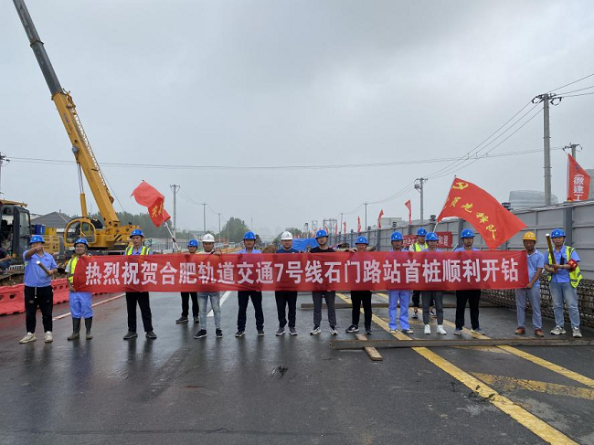 6月28日上午8點(diǎn)18分,合肥市軌道交通7號(hào)線一工區(qū)石門路站主體圍護(hù)樁首樁順利開(kāi)鉆,標(biāo)志著該站點(diǎn)正式進(jìn)入車站主體施工階段。