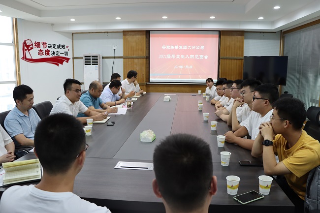 7月6日晚上,六分公司會議室氣氛熱烈,13名2021屆畢業生來到六分公司報到,分公司領導班子、機關各部門參加了此次新員工入職見面會。