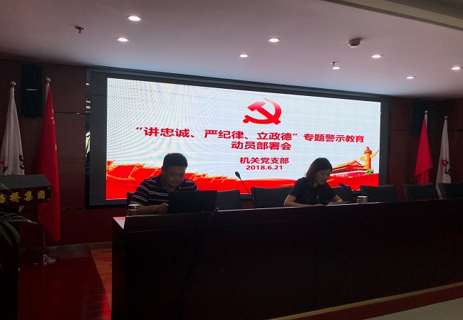6月21日下午,公司機關黨支部在安建大廈八樓會議室召開“講忠誠、嚴紀律、立政德”專題警示教育動員部署會。會議由公司機關黨支部書記徐慧玲主持,機關黨支部全體黨員和部分員工參會。