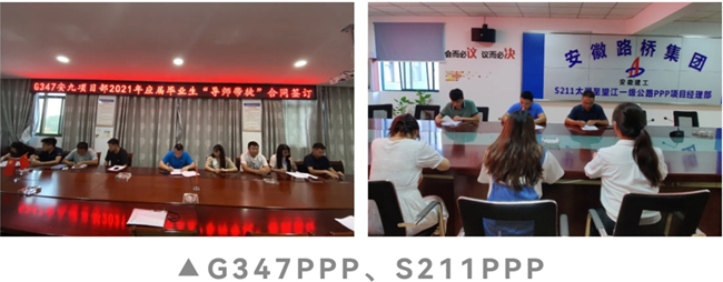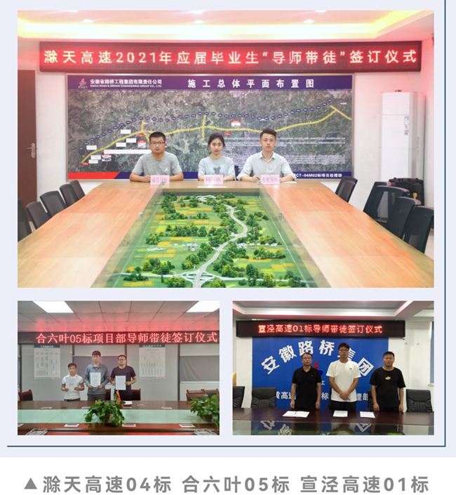 簽約儀式上,G347PPP、S211PPP、滁天高速04標(biāo)等項(xiàng)目宣貫了《安徽省路橋工程集團(tuán)有限責(zé)任公司導(dǎo)師帶徒活動(dòng)實(shí)施辦法》等文件內(nèi)容,15位新入職大學(xué)生挑選了自己的專業(yè)導(dǎo)師和成長(zhǎng)導(dǎo)師,并簽署了“導(dǎo)師帶徒”合同書。