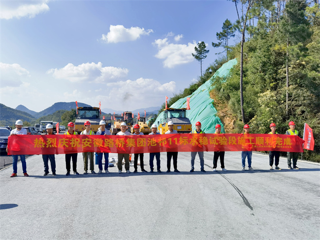 2021年9月16日上午10點,池祁高速11標項目率先在祁高速祁門段完成首段水泥穩定碎石底基層試驗段施工,標志著全面進入路面水穩攤鋪施工階段。
