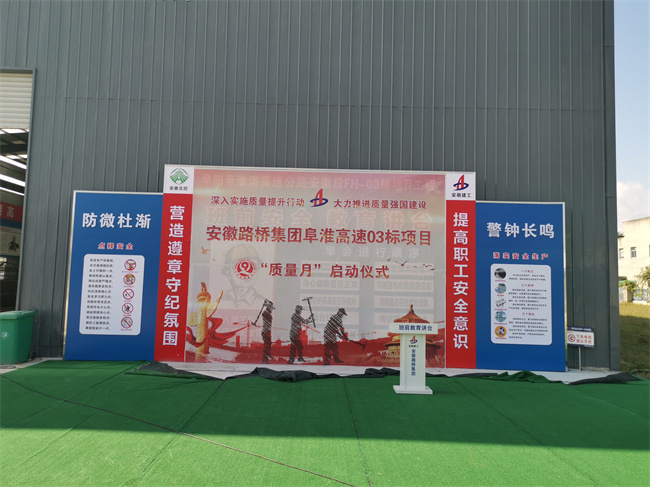 召開動員大會,細化活動方案。各項目組織全體技術人員學習公司2021年“質量月”活動文件并召開“質量月”活動動員會。為確保活動扎實有效,措施得力,各項目部結合實際,制定并細化“質量月”活動方案,重點組織開展質量安全隱患排查、質量創新工藝征集等活動。其中亳蒙項目聯合業主、總監辦、駐地辦開展質量月活動,使質量是企業生命的理念深入人心。