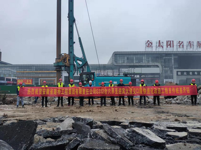 1月6日上午10點(diǎn)58分,G312合六界至迎賓大道交口段快速化改造工程項(xiàng)目迎賓大道高架橋首根樁基順利開鉆,歷時(shí)近九個(gè)小時(shí),于19點(diǎn)30分完成混凝土灌注,拉開了橋梁樁基施工的序幕。