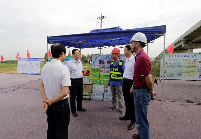 7月26日上午,省交控集團黨委副書記、總經理錢東升在公司黨委書記、董事長、總經理盛明宏、交控集團建設管理部部長蘇新國的陪同下,前往蕪合改擴建03標“送清涼”。公司總經理助理、工程管理部經理盧軍球以及項目辦、蕪合改擴建03標相關負責同志參加慰問活動。