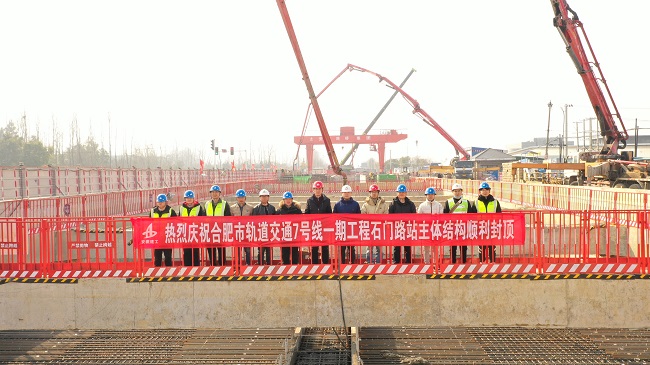 2月24日上午,隨著最后一段混凝土澆筑完成,由安徽路橋集團承建的合肥市軌道交通7號線石門路站實現主體結構封頂,成為了7號線一工區首個完成主體結構封頂的車站。