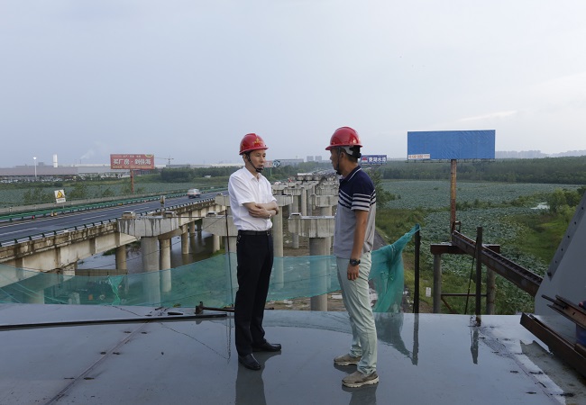隨后,在項目負責人的陪同下,盛董事長登上中派河大橋,查看大橋建設情況。項目負責人匯報了中派河大橋當前工程進度、質量、安全管理、技術創新以及下一階段工作計劃。在聽取匯報后,盛董事長表示,中派河大橋使用了大量新工藝、新技術、新材料,社會影響力大,各界關注度高,項目部一定要緊抓質量、安全不放松,同時注重技術創新、經驗總結、綠色環保,把中派河大橋打造成為行業內的精品工程,內強素質、外樹品牌,為路橋集團增光添彩。