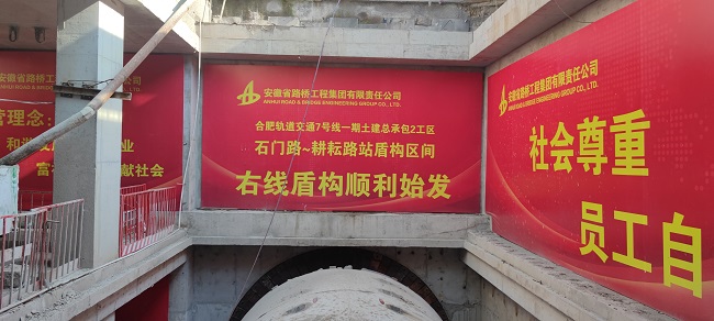 5月24日上午,合肥市軌道交通7號線項目石門路站右線隧道的“星云號”盾構機向著耕耘路站方向順利始發。