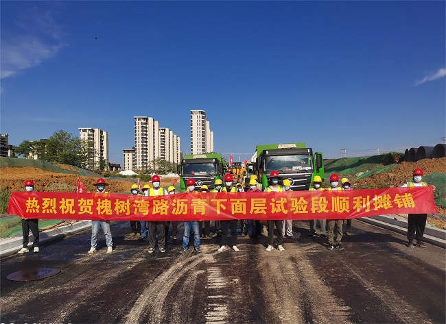 2022年6月30日上午8點,合肥運河新城槐樹灣路、春灣路(原銀灣路)道路工程項目一工區(qū)南側機動車道第一層瀝青開始攤鋪,標志著正式進入道路面層施工階段。