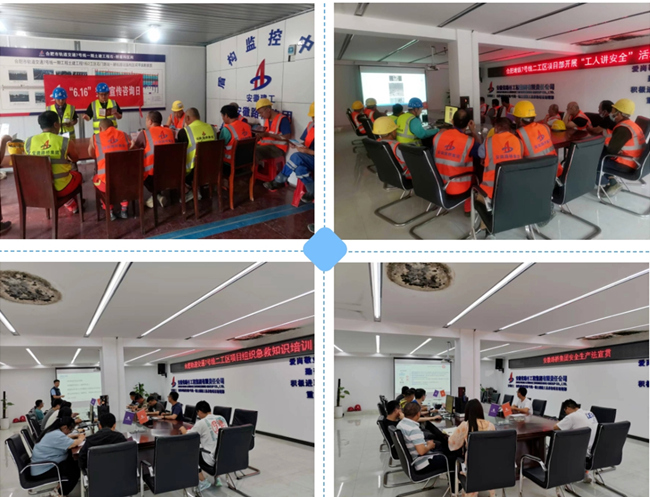 在安全生產(chǎn)月期間,合六葉06標(biāo)項(xiàng)目在工地顯要位置懸掛和張貼安全生產(chǎn)宣傳橫幅、標(biāo)語(yǔ)及海報(bào),組織職工觀看《生命重于泰山》電視專題片,有效提升從業(yè)人員安全意識(shí),營(yíng)造安全生產(chǎn)良好氛圍。在“6.16”安全咨詢?nèi)债?dāng)天,項(xiàng)目員工走入社區(qū),向群眾進(jìn)行安全知識(shí)宣傳,同時(shí)開(kāi)展安全月進(jìn)校活動(dòng),向青少年宣傳安全知識(shí),增強(qiáng)青少年的安全意識(shí)。