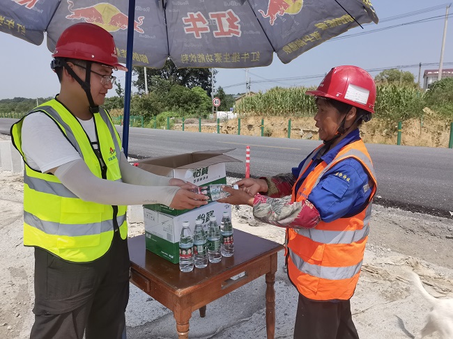 在G530查橋至牛磯段一級公路建設工程2標段施工現(xiàn)場,機械轟鳴、彩旗飄揚、車輛循環(huán)往返。為了實現(xiàn)預定通車目標,項目部主動調整施工時間和作業(yè)方式,采取“干兩頭、休中間”的工作模式,實行錯峰施工,避開高溫時段。同時,在施工現(xiàn)場搭設臨時休息棚、設置飲水區(qū),提供降溫飲品和防暑藥品,做好日常防護,避免工人中暑事件的發(fā)生,切實保障一線施工人員的生命健康安全。此外,為進一步落實防暑降溫措施,嚴防高溫中暑和其他各類安全事故的發(fā)生,項目部專門對作業(yè)班組開展了防暑降溫及高溫中暑急救方法培訓,切實提高施工人員自我保護意識和應急處置能力。