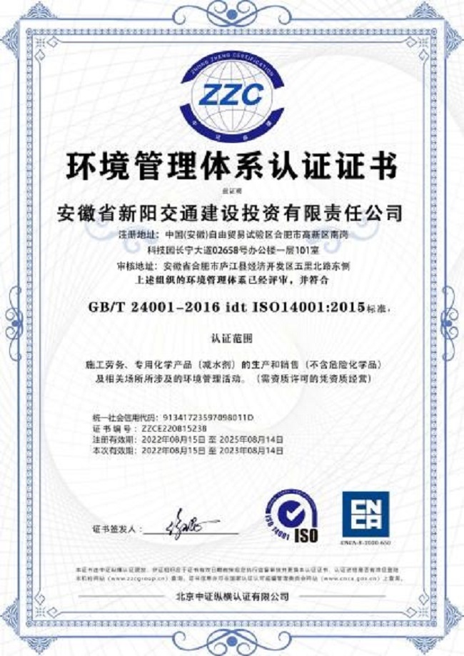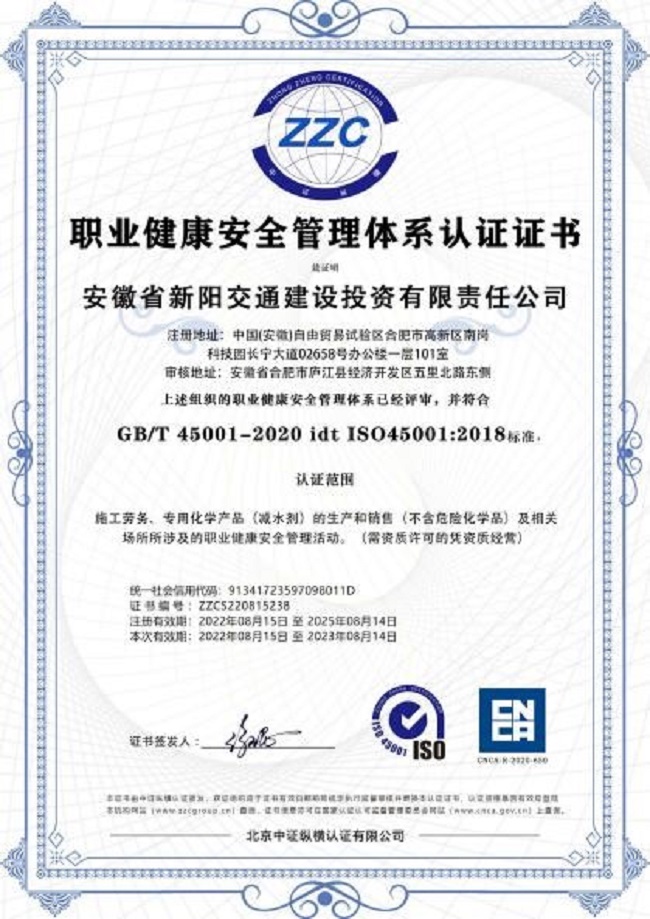近日,從認證公司傳來喜訊,新陽公司順利通過ISO9001質量管理體系、ISO14001環境管理體系、ISO45001職業健康安全管理體系認證。