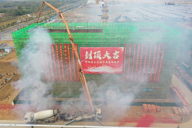 2022年9月25日上午9時58分,隨著最后一方混凝土澆筑完畢,安徽建工交通智造公司科研辦公樓順利完成封頂。
