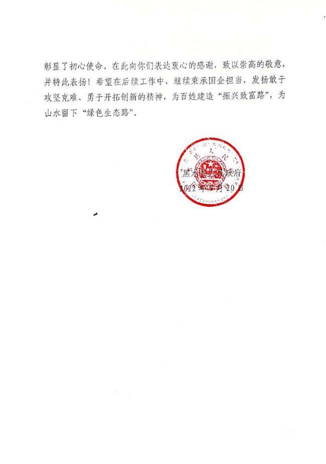 近日,黑水縣人民政府向安徽路橋集團發(fā)來表揚信,對項目建設者在當地出現(xiàn)塌方險情時,踐行“人民至上、生命至上”理念,積極參與搶險救災的行為表達衷心地感謝,致以崇高的敬意。