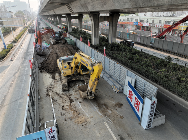 新春佳節(jié)剛過(guò),金寨路高架橋綁寬項(xiàng)目現(xiàn)場(chǎng)一片火熱景象。伴隨著機(jī)械設(shè)備的轟鳴聲,近百名工人在奮力施工雨污水管道、電排及雨水箱涵,全力沖刺節(jié)點(diǎn)目標(biāo),掀起大干熱潮。